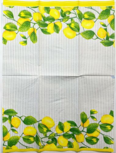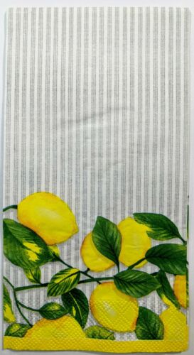 TWO Individual Paper Guest Decoupage Napkins- Lemon Pinstripe 1089