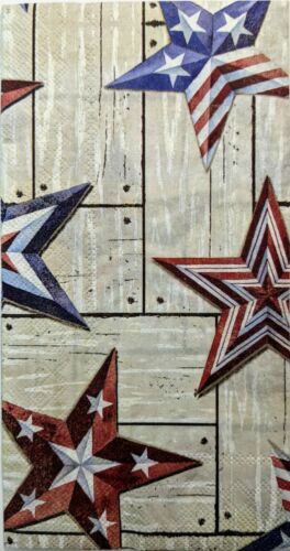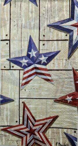 TWO Individual Paper Guest 16" x 11.5", 3-ply Decoupage Napkin - Patriotic Barn Star