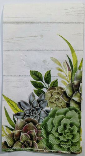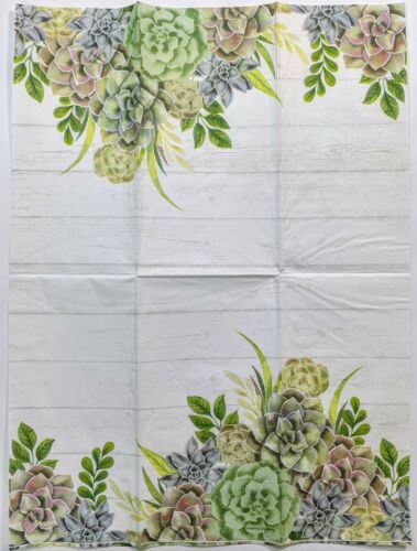 TWO Individual Paper Guest Decoupage Napkins-Succulents w/ White Background 1087