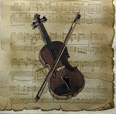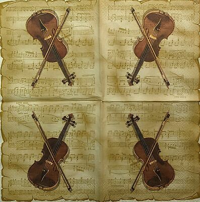 TWO Individual Paper Lunch Decoupage Napkins - 1357 Violin Vintage Music Sheet