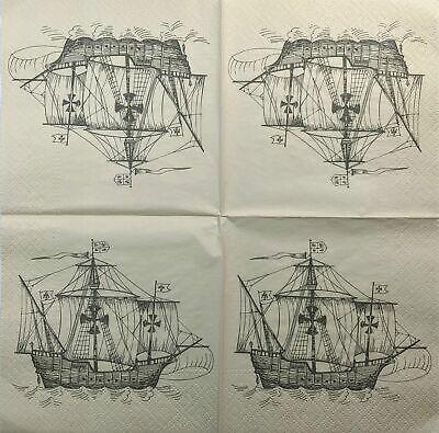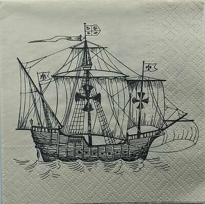 TWO Individual Paper Lunch Decoupage Napkins - 1358 Old World Ship with Sails
