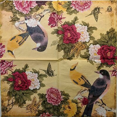 TWO Individual Paper Lunch Decoupage Napkins - 1364 Bird Floral Retreat