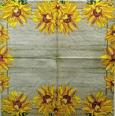 TWO Individual Paper Lunch Decoupage Napkins - 1369 Rustic Farm Sunflowers Wood