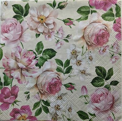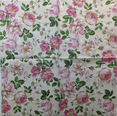 TWO Individual Paper Lunch Decoupage Napkins - 1373 Pretty in Pink Floral