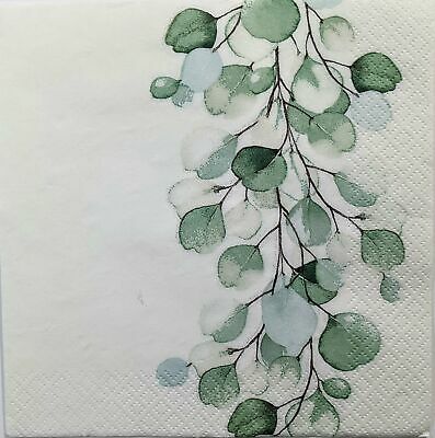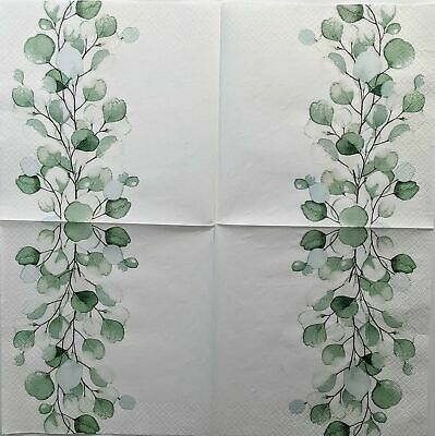 TWO Individual Paper Lunch Decoupage Napkins - 1378 Green Sprig Leaves