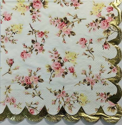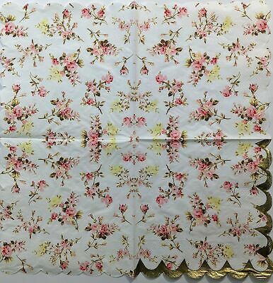 TWO Individual Paper Lunch Decoupage Napkins - 1379 Pink Floral Gold Foil Border