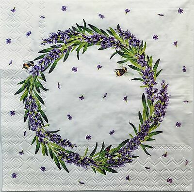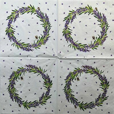 TWO Individual Paper Lunch Decoupage Napkins - 1380 Lavender Wreath w/ Bees