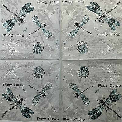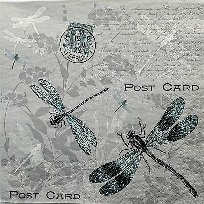 TWO Individual Paper Lunch Decoupage Napkins - 1382 Vintage Dragonflies PostCard
