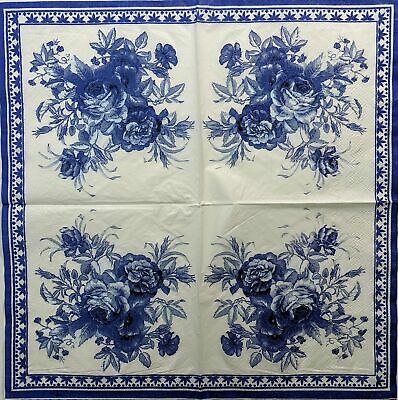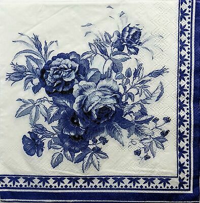 TWO Individual Paper Lunch Decoupage Napkins - 1496 Romantic Blue Floral