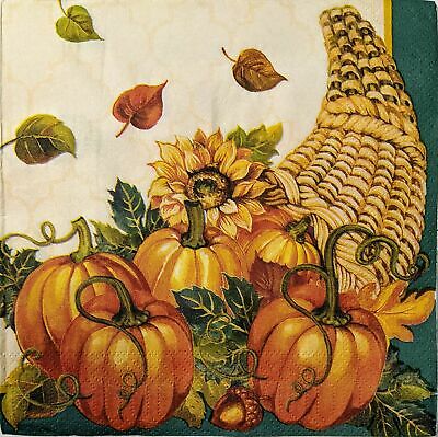 TWO Individual Paper Lunch Decoupage Napkins - 1605 Thanksgiving Cornucopia