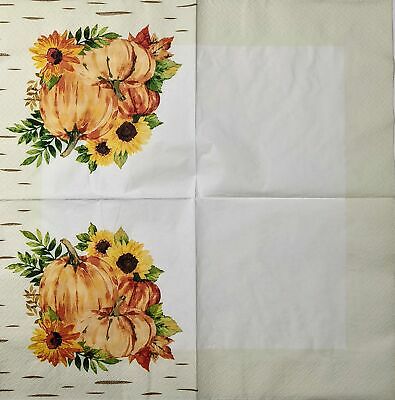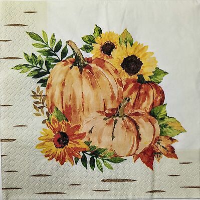 TWO Individual Paper Lunch Decoupage Napkins - 1606 Pumpkins & Sunflowers