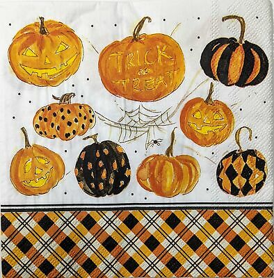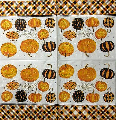 TWO Individual Paper Lunch Decoupage Napkins - 1607 Plaid Pumpkins & Halloween