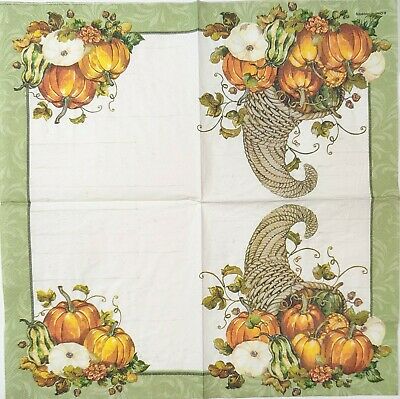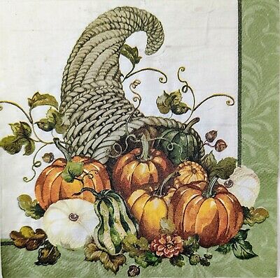 TWO Individual Paper Lunch Decoupage Napkins - 1710 Cornucopia Harvest