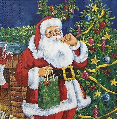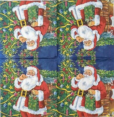 TWO Individual Paper Lunch Decoupage Napkins - 1716 Traditional Santa