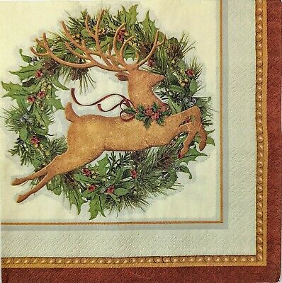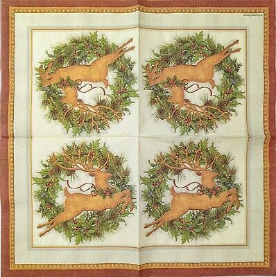 TWO Individual Paper Lunch Decoupage Napkins - 1719 Reindeer Wreath