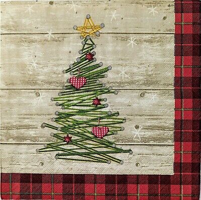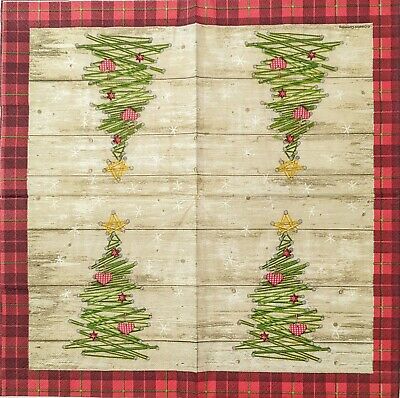 TWO Individual Paper Lunch Decoupage Napkins - 1720 Christmas Plaid Tree