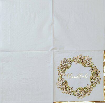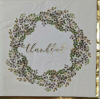 TWO Individual Paper Lunch Decoupage Napkins - 1721 Foil Thankful Wreath