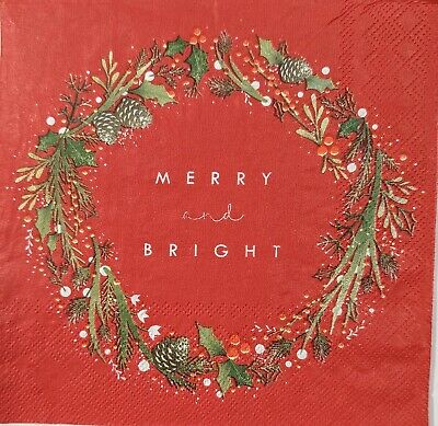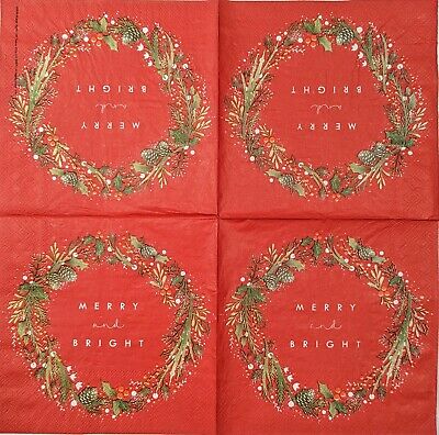 TWO Individual Paper Lunch Decoupage Napkins - 1728 Merry & Bright Wreath