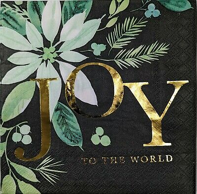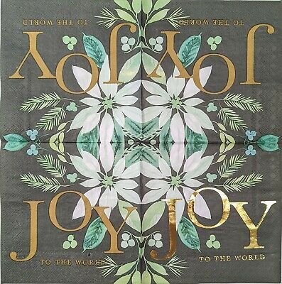 TWO Individual Paper Lunch Decoupage Napkins - 1729 Foil Joy to the World