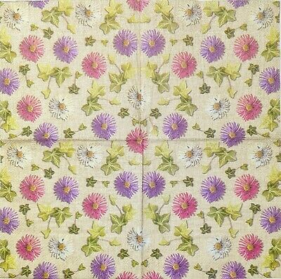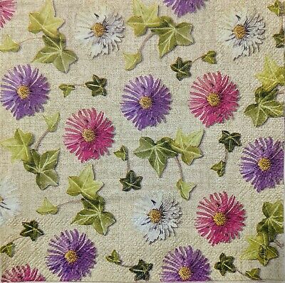 TWO Individual Paper Lunch Decoupage Napkins - 1750 Autumn Asters Floral