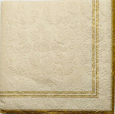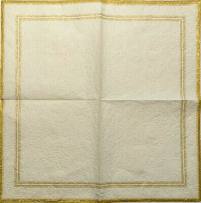 TWO Individual Paper Lunch Decoupage Napkins - 1777 Embossed Golden Cream