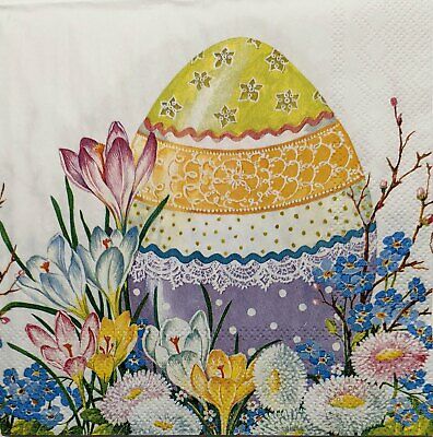 TWO Individual Paper Lunch Decoupage Napkins - 1825 Spring Flowers Easter Egg