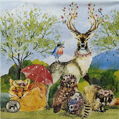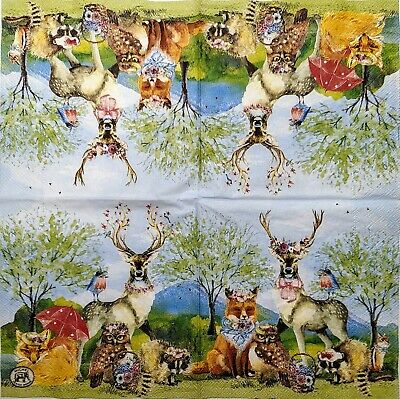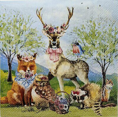 TWO Individual Paper Lunch Decoupage Napkins - 1843 Forest Animal Garden Party
