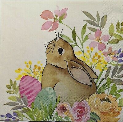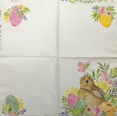 TWO Individual Paper Lunch Decoupage Napkins - 1899 Springtime Easter Bunny