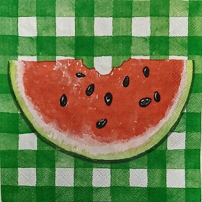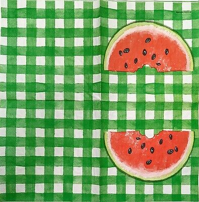 TWO Individual Paper Lunch Decoupage Napkins - 1908 Watermelon Green Check
