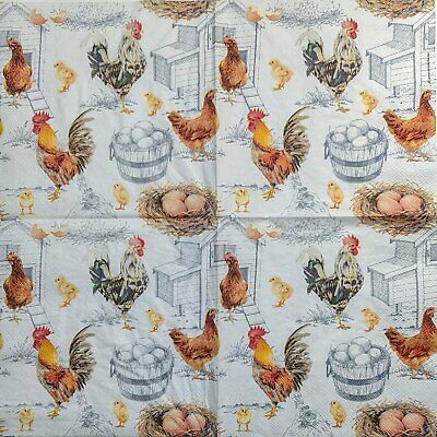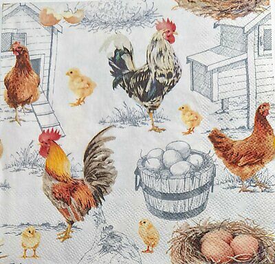 TWO Individual Paper Lunch Decoupage Napkins - 1962 Chicken & Rooster Farm