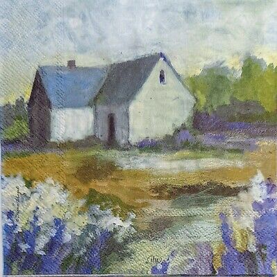 TWO Individual Paper Lunch Decoupage Napkins - 1964 Impressionist Country Home