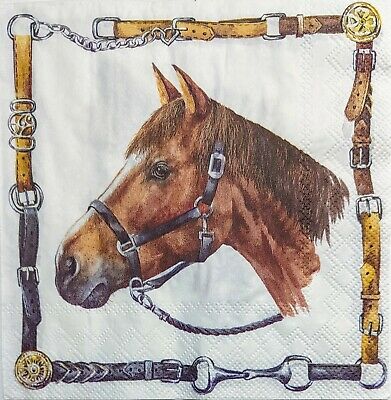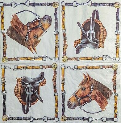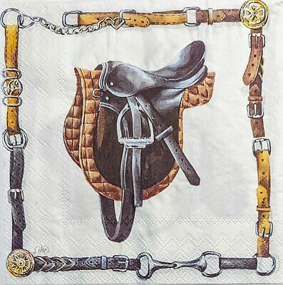 TWO Individual Paper Lunch Decoupage Napkins - 1965 Nika Country Horse & Saddle