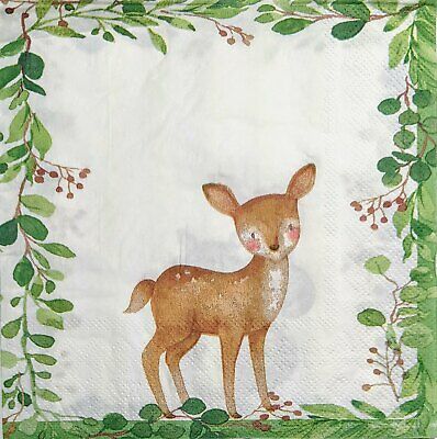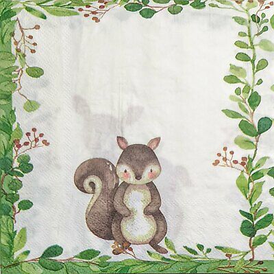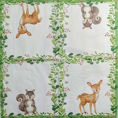 TWO Individual Paper Lunch Decoupage Napkins - 1968 Forest Deer & Squirrel
