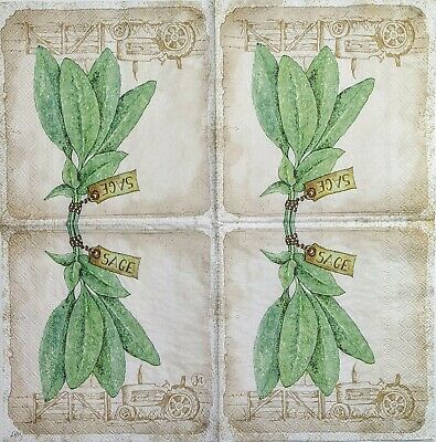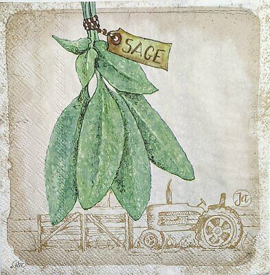 TWO Individual Paper Lunch Decoupage Napkins - 1970 Herbs & Spices Sage Farm