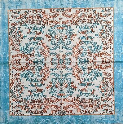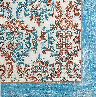 TWO Individual Paper Lunch Decoupage Napkins - 1976 Teal & Rust Damask