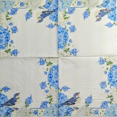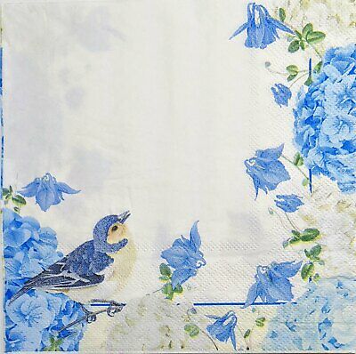TWO Individual Paper Lunch Decoupage Napkins - 1977 Blue Songbird Hydrangea