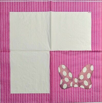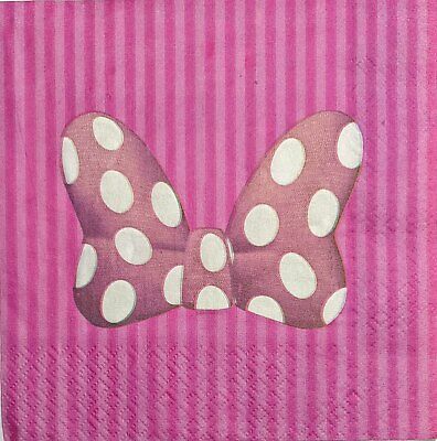 TWO Individual Paper Lunch Decoupage Napkins - 1980 Pink Minnie Polka Dot Bow